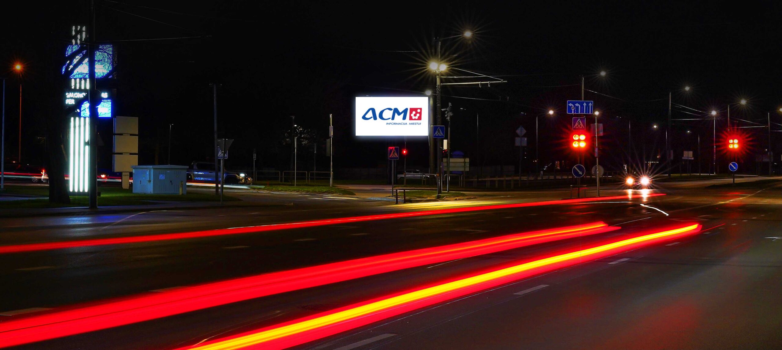 - Šviesoforu reguliuojama sankryža. Ekranas puikiai matomas sustojus prie šviesoforo – reklama lieka žvilgsnio lauke ilgiau, todėl žinutė geriau įsimenama
