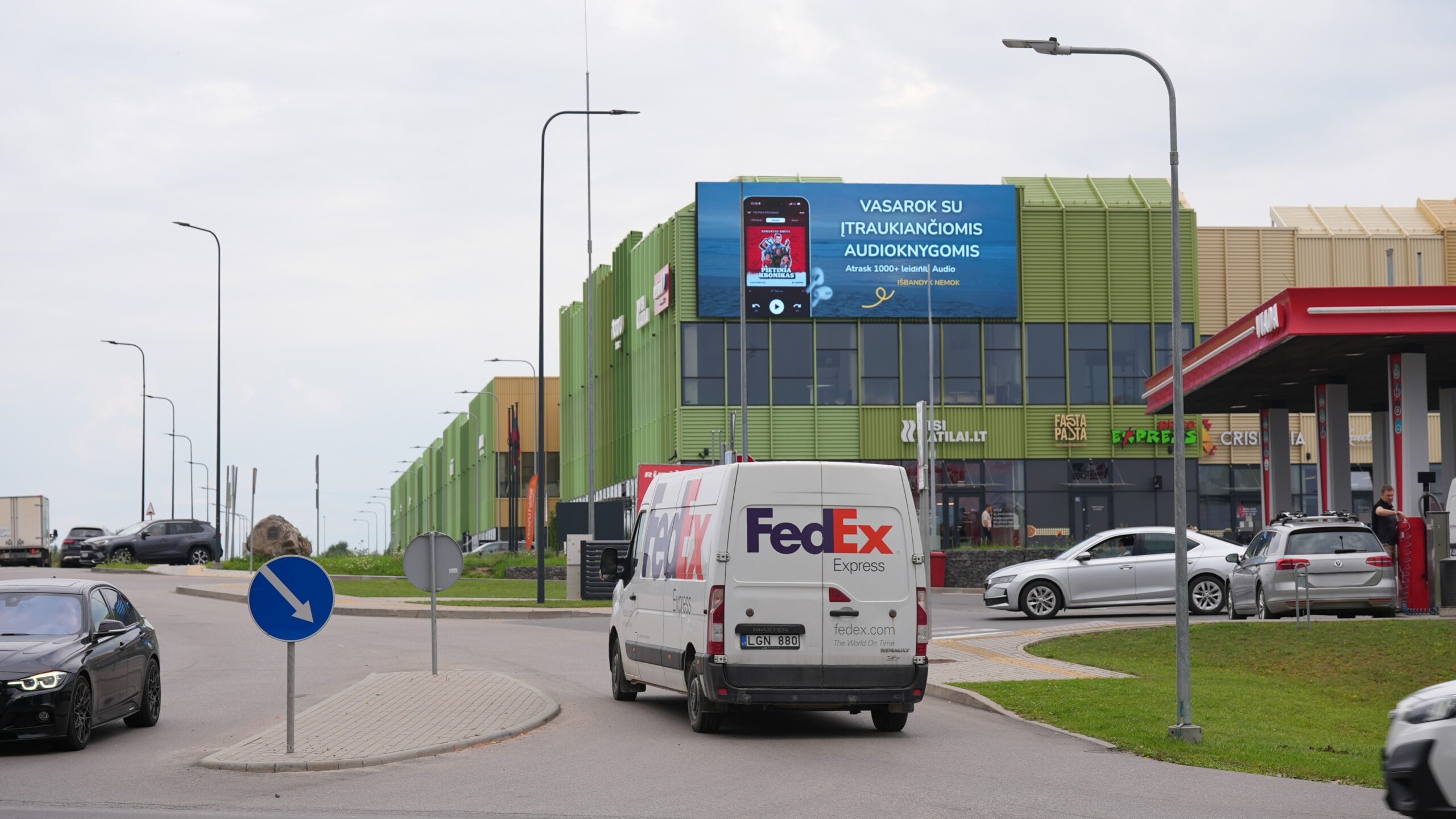 - Strateginė vieta – ekranas sumontuotas ant modernaus verslo miestelio „Vilnius URBAN HUB“ pastato, kurį lengva pasiekti automobiliu, viešuoju transportu ar net sunkiuoju transportu.