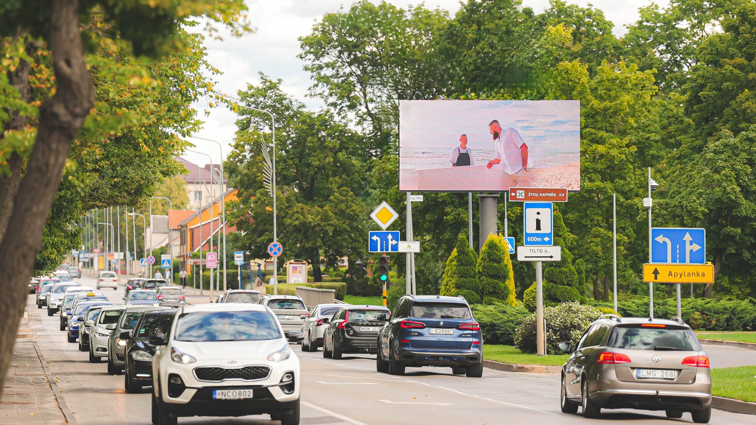 - Ekranas įrengtas šviesoforu reguliuojamoje sankryžoje, kur transporto srautai dažnai sustoja laukdami žalio signalo. Tai reiškia, kad vairuotojai ir keleiviai ilgiau mato jūsų reklamą stovėdami vietoje, todėl žinutė įsimenama efektyviau. Tai ypač vertinga reklamai, kuri reikalauja vizualinio įsitraukimo ar aiškaus pasiūlymo perteikimo.
