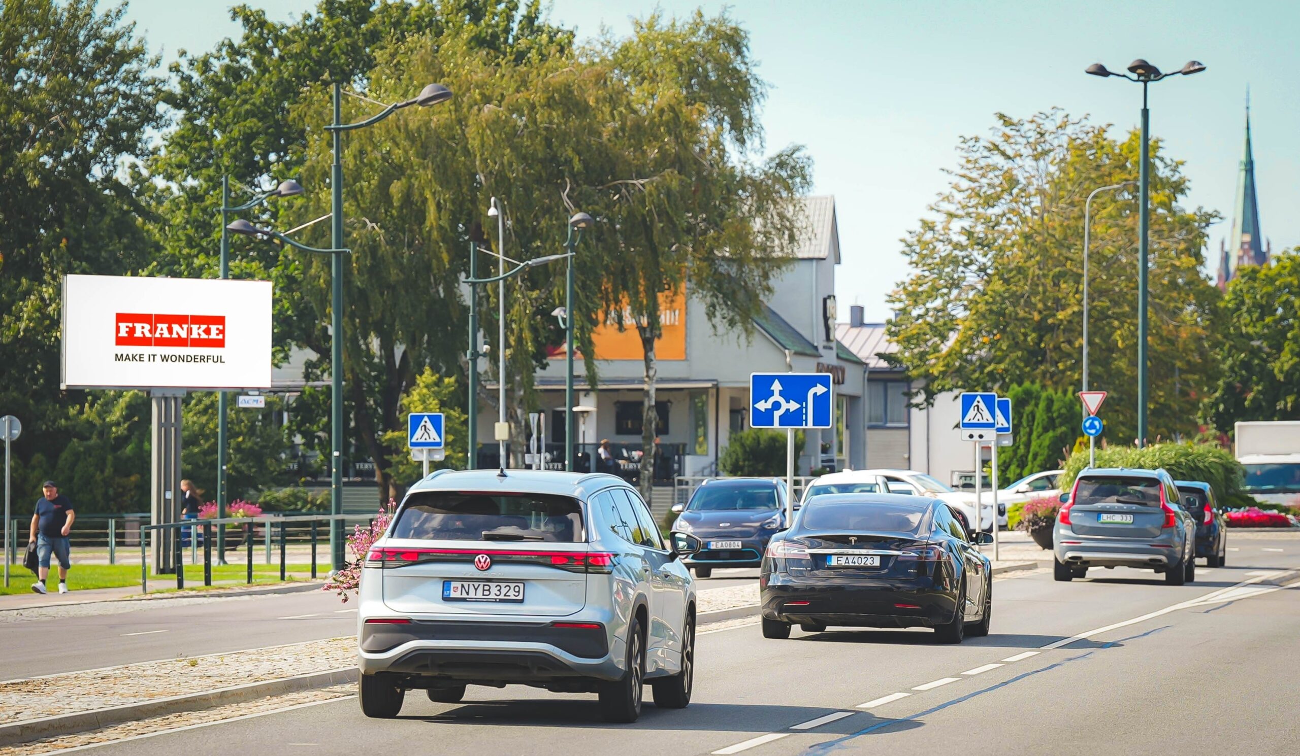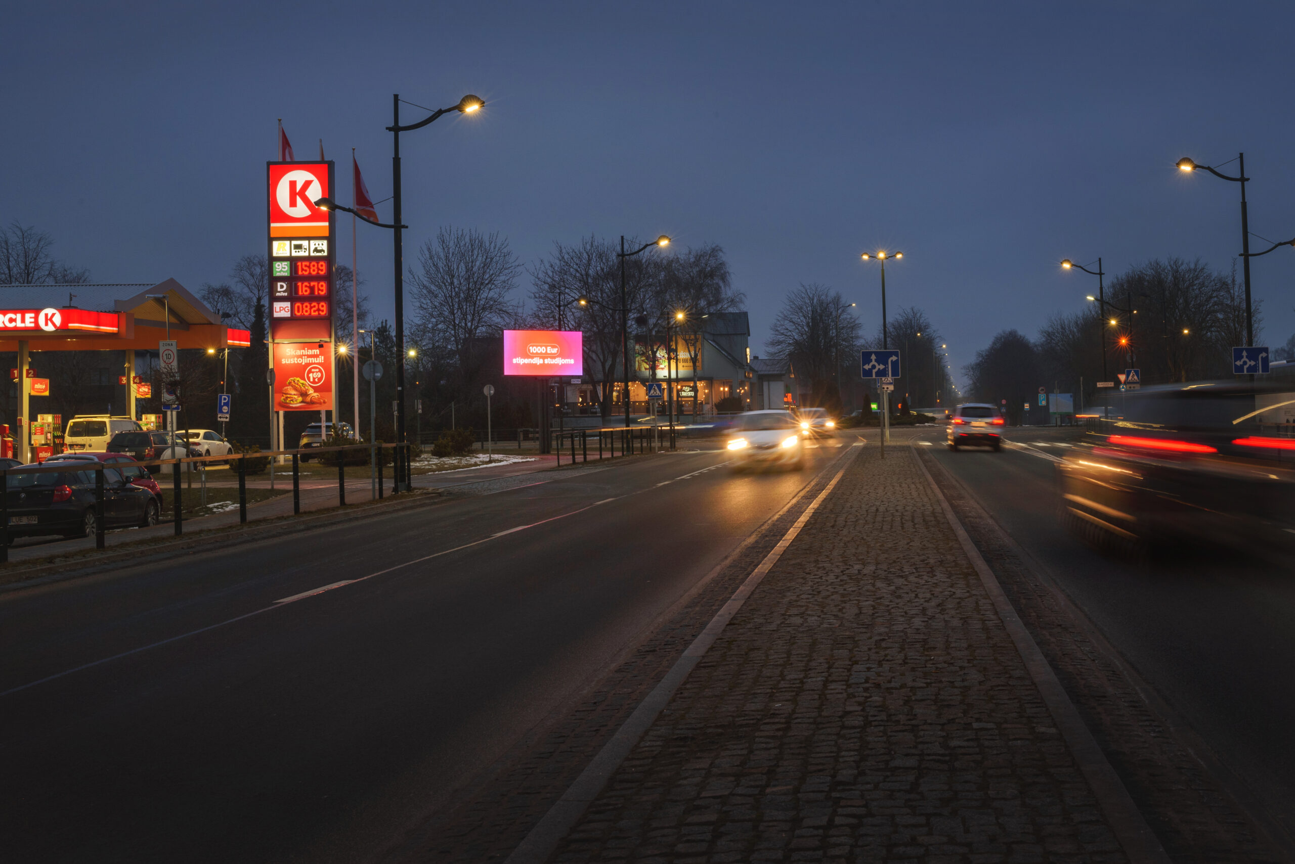 - Nuolatinis srautas viso sezono metu. Nors Palanga ypač aktyvi vasarą, kelias į kurortą intensyviai naudojamas visus metus – tiek gyventojų, tiek svečių. Ekranas yra ties vienu iš svarbiausių srautų, todėl reklama čia veikia ištisus metus.