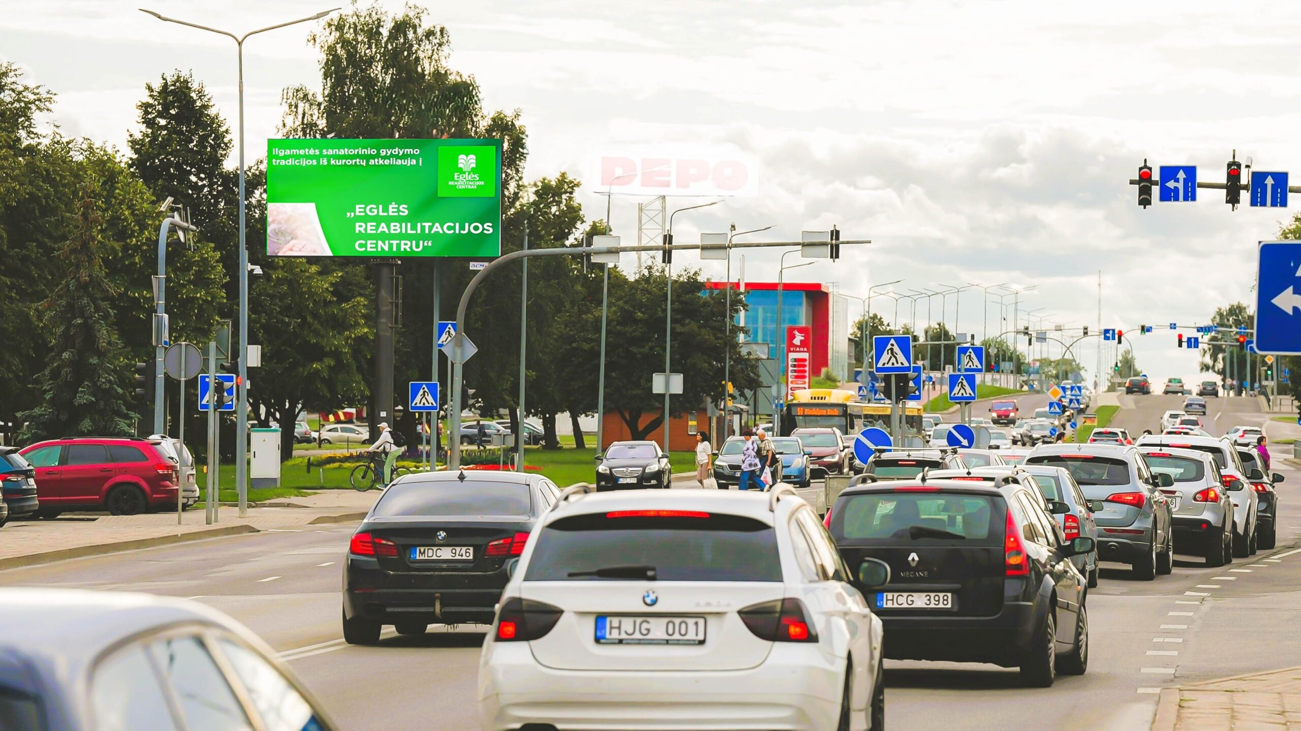 - Šalia daugybė traukos objektų – JYSK, IKEA, DEPO, LIDL, RIMI, Baby City. Stiprūs komerciniai kaimynai didina reklaminių žinučių matomumą ir veikia kaip papildomas dėmesio traukos veiksnys.