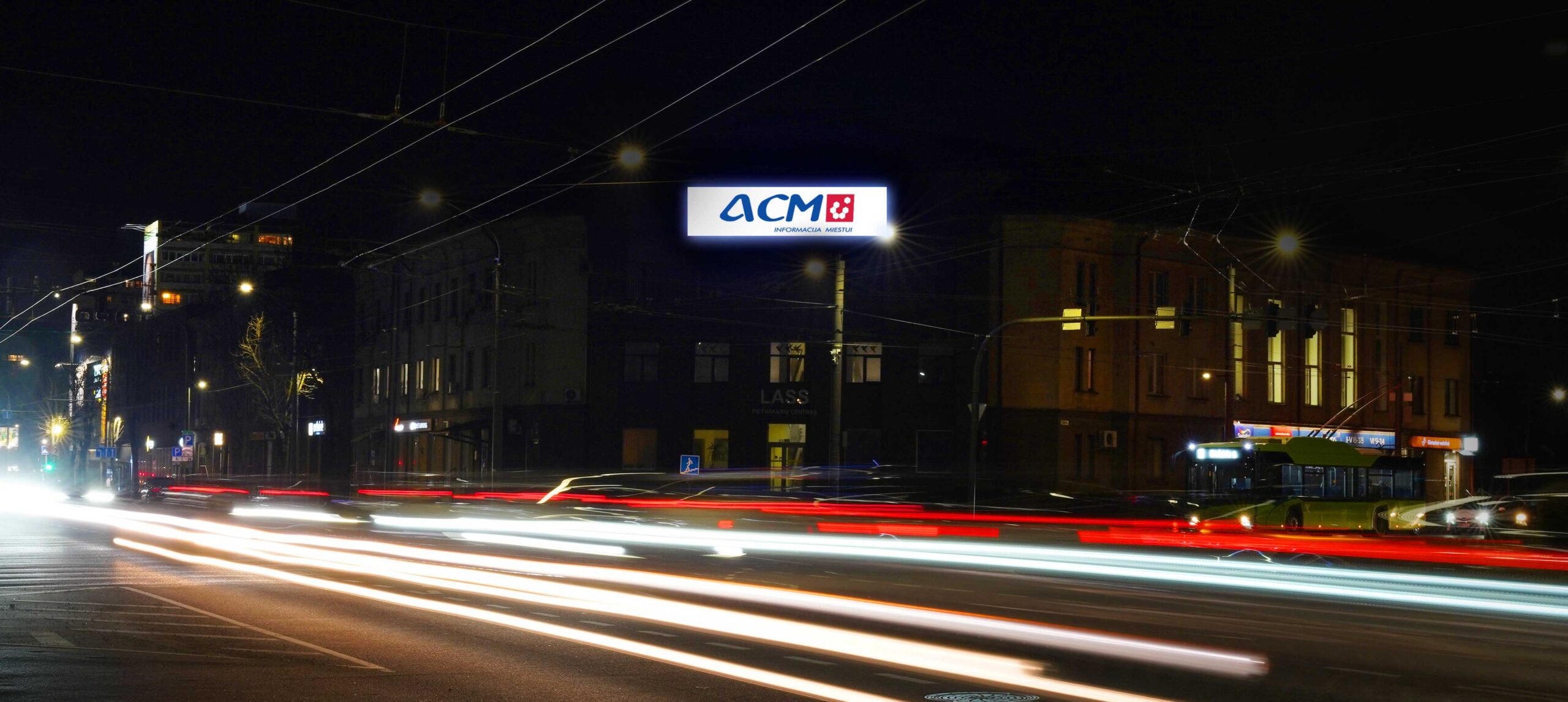- Strategiška vieta. Ekranas įrengtas sankryžoje, kur susikerta Savanorių pr., Taikos pr. ir Tvirtovės al. – itin didelio transporto srauto vieta.